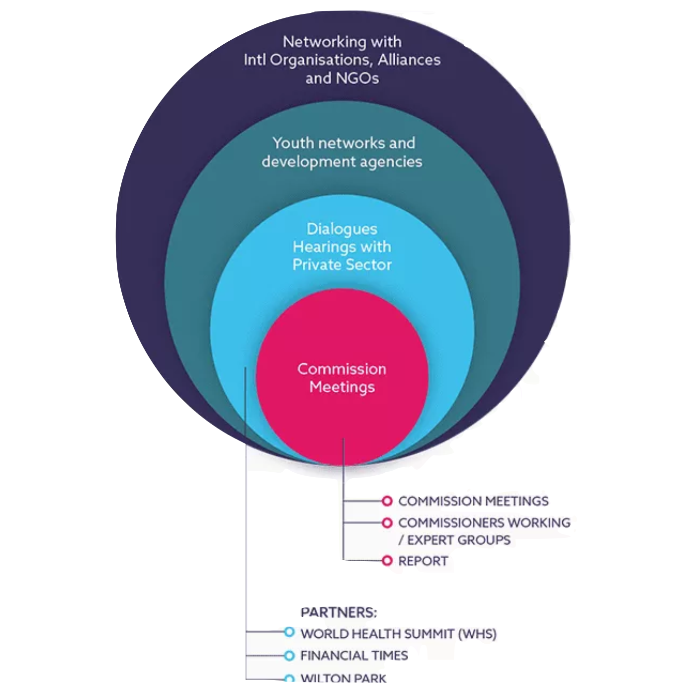 Network across international and UN organisations to establish links with other digital health and AI initiatives, making full use of global, regional, and national events to debate and present the Commission’s findings.